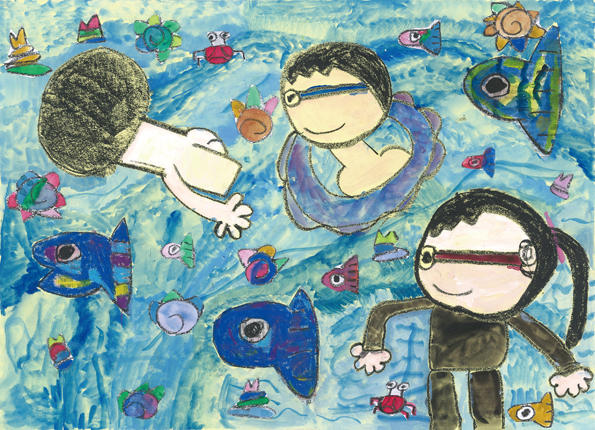 海で泳いで楽しいな